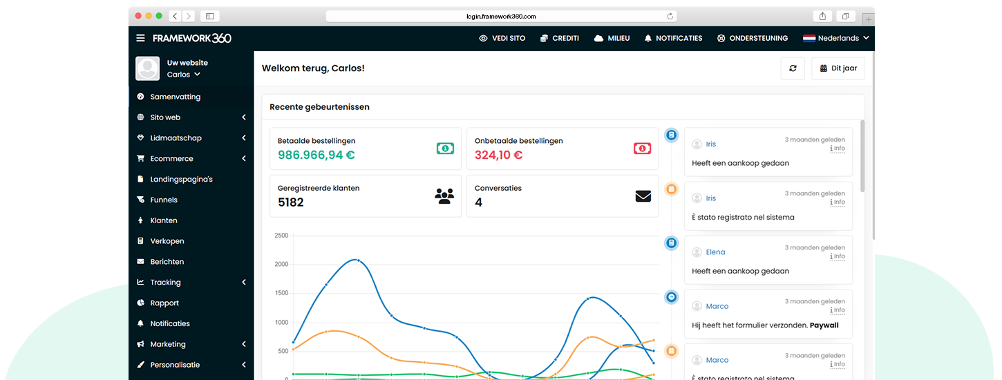 Beheer oneindige klantgegevens om constant contact met hen te houden dankzij de geïntegreerde CRM.